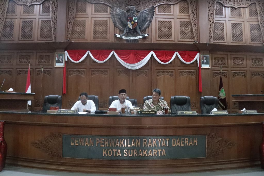 SURAKARTA – Dewan Perwakilan Rakyat Daerah (DPRD) Kota Surakarta menggelar Rapat Paripurna dengan agenda penyampaian pidato sambutan Wali Kota Surakarta terpilih, Respati Achmad Ardianto, Jumat (21/2) di Graha